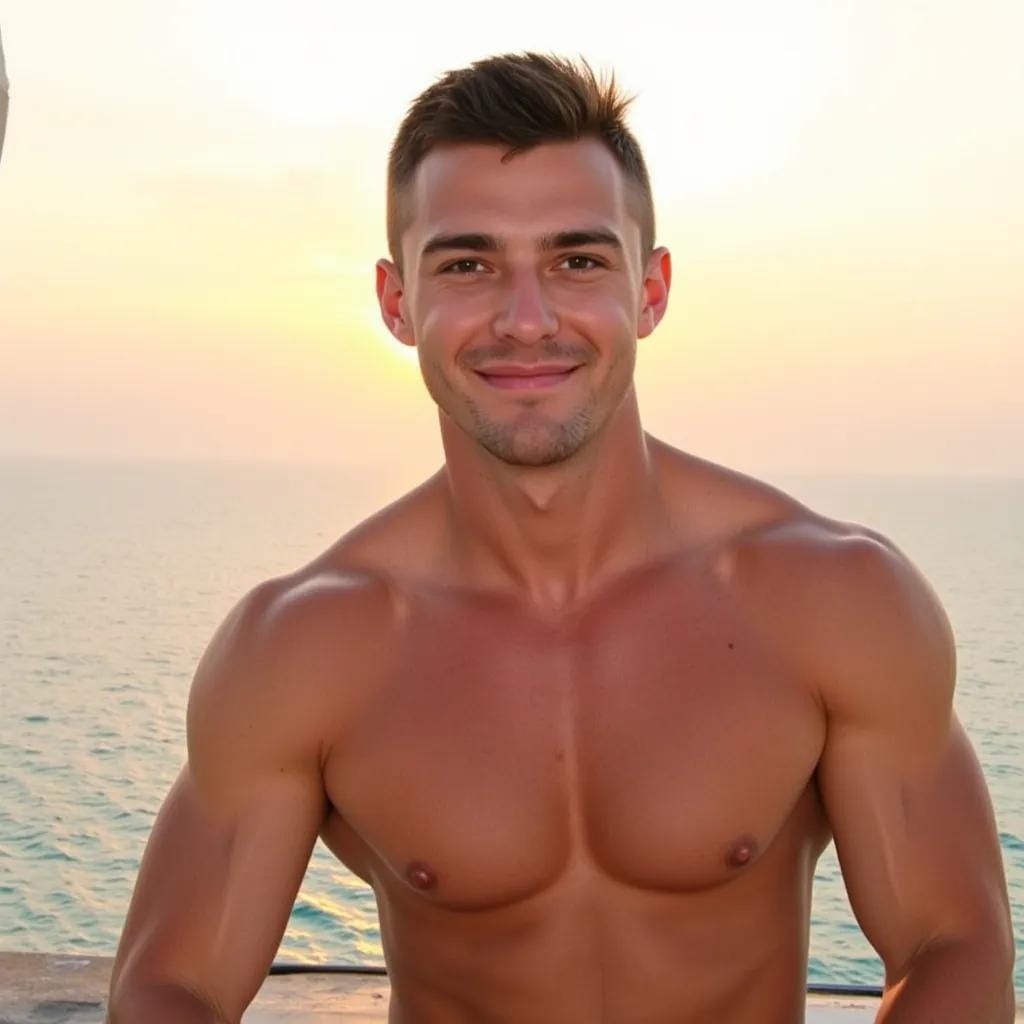 The warm, golden light of the setting sun danced across the turquoise waters of the Mediterranean, casting a serene glow over the luxurious rooftop terrace of the Hotel de la Mer. I stood at the edge of the pool, my feet submerged in the cool, crystal-clear water, as I gazed out at the breathtaking view. Suddenly, a strong, masculine hand grasped my shoulder, spinning me around to face the source of the touch.