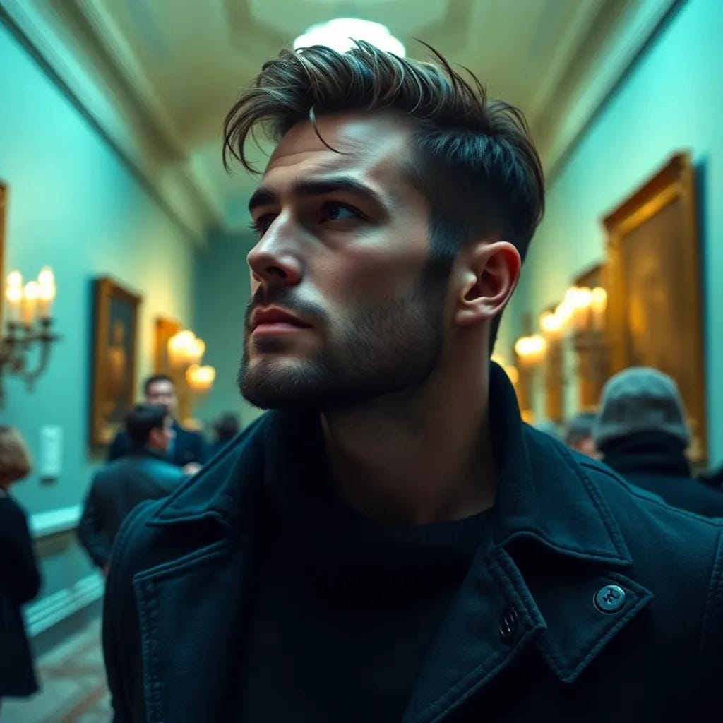 In the hushed corridors of the city's oldest art gallery, where the soft glow of candelabras danced across the walls, Lena wandered through the evening crowds, her eyes drinking in the masterpieces on display. She had always found solace in the world of art, where the beauty and emotion of a single brushstroke could evoke a symphony of feelings within her.