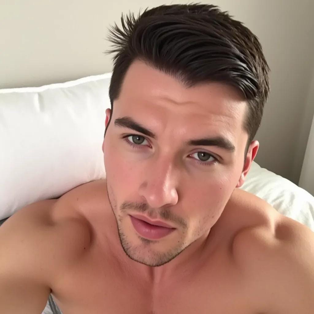 His dark hair was mussed, his jawline sharp as he pondered the futility of human endeavor. As he stood there, lost in thought, a figure emerged from the shadows. Kael, his personal assistant, approached him with a quiet reverence, his eyes locked on Ryder's rugged profile. Kael's own gaze was a deep, piercing blue, his features chiseled and angular, his skin bronzed from hours in the sun. Ryder's eyes narrowed as Kael approached, his nostrils flaring slightly as he inhaled the scent of Kael's cologne.