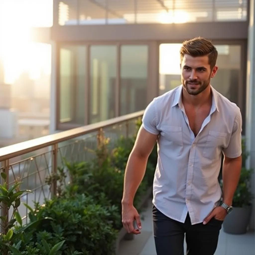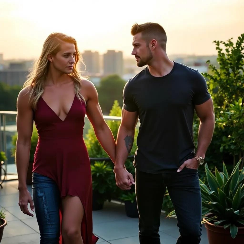 As the sun's rays danced across the tranquil rooftop garden, casting a warm glow over the lush greenery, Emily and James strolled hand in hand, their footsteps synchronized in perfect harmony. The gentle breeze carried the sweet scent of blooming flowers, and the soft chirping of birds provided a soothing serenade.