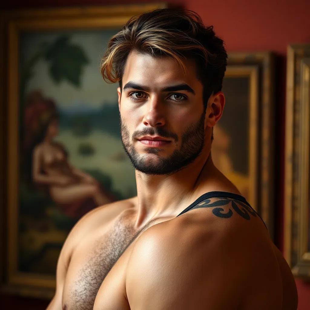 The soft murmur of conversations and the gentle rustle of silk against the walls created a soothing melody, a symphony of refinement and culture. As she paused before a particularly striking Monet, a low, smooth voice whispered in her ear, "You have a discerning eye, don't you?" Emma's heart skipped a beat as she turned to face the speaker. His eyes, a deep shade of indigo, sparkled with warmth, and his smile was a gentle caress. "I do," she replied, her voice barely above a whisper, as if not to disturb the reverent atmosphere. "The way the light dances across the water, the subtle play of colors... it's almost as if the artist has captured the very essence of the scene." He nodded, his eyes never leaving hers.