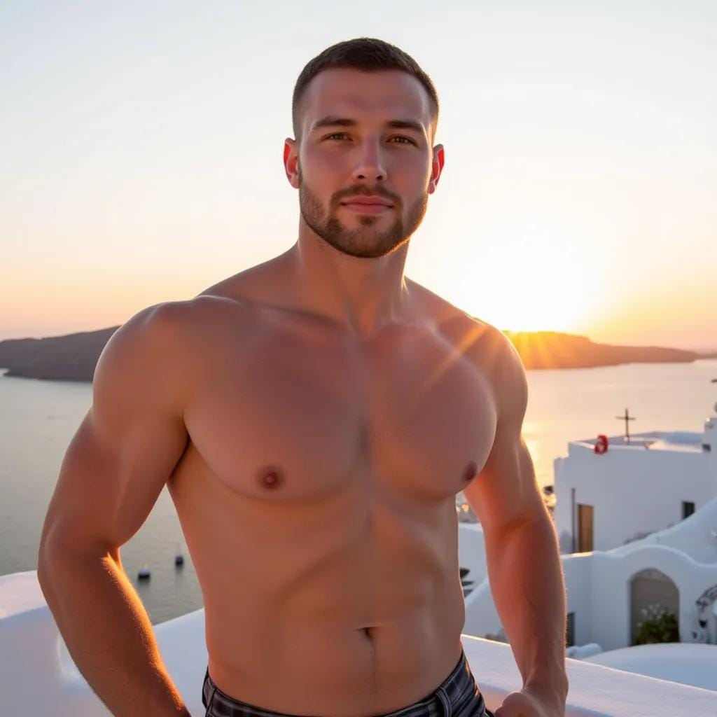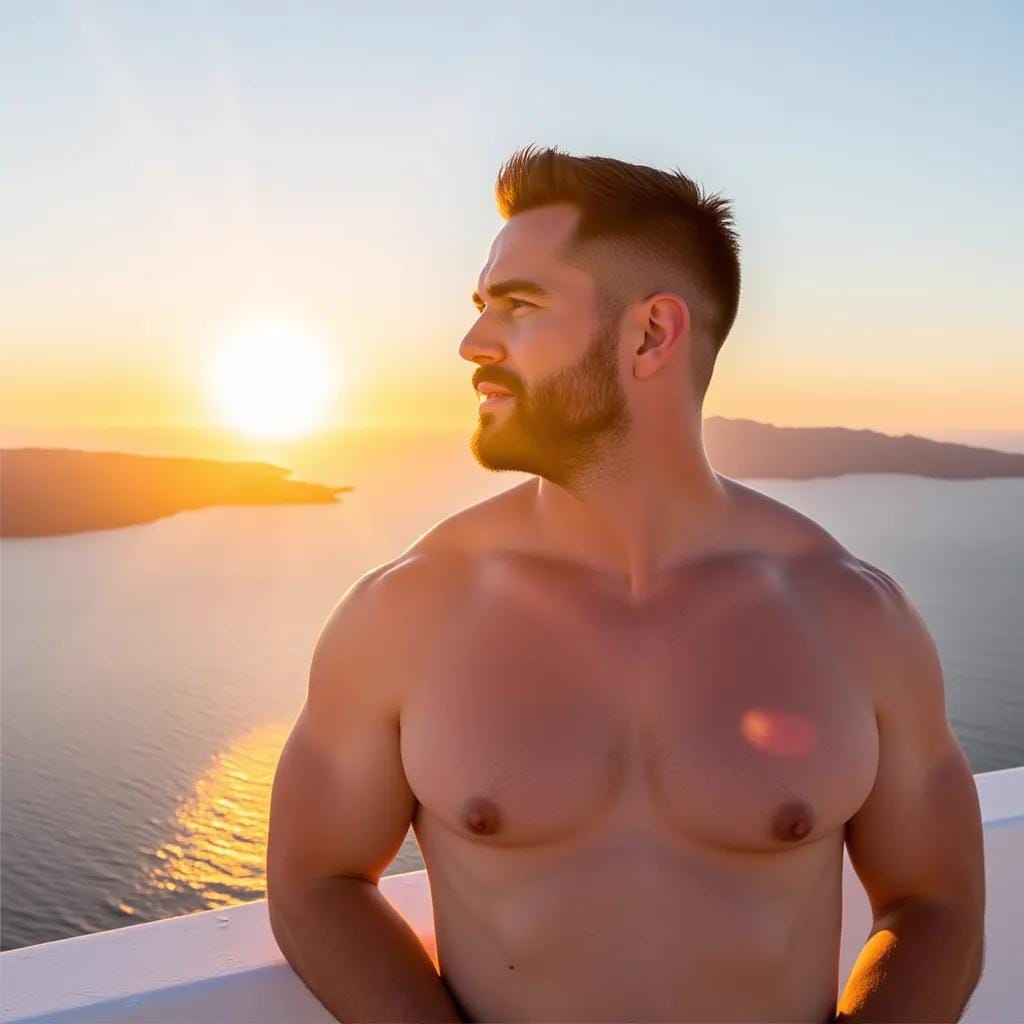The sound of the waves crashing against the shore, the warm breeze rustling his hair, and the intoxicating scent of jasmine wafting from the nearby gardens all conspired to distract him from the one thing that truly mattered: the man standing beside him. Kael, with his chiseled jawline and piercing blue eyes, was a sight to behold. His broad shoulders and powerful physique seemed to radiate an aura of confidence, drawing the eye inexorably to his rugged, weathered skin.
