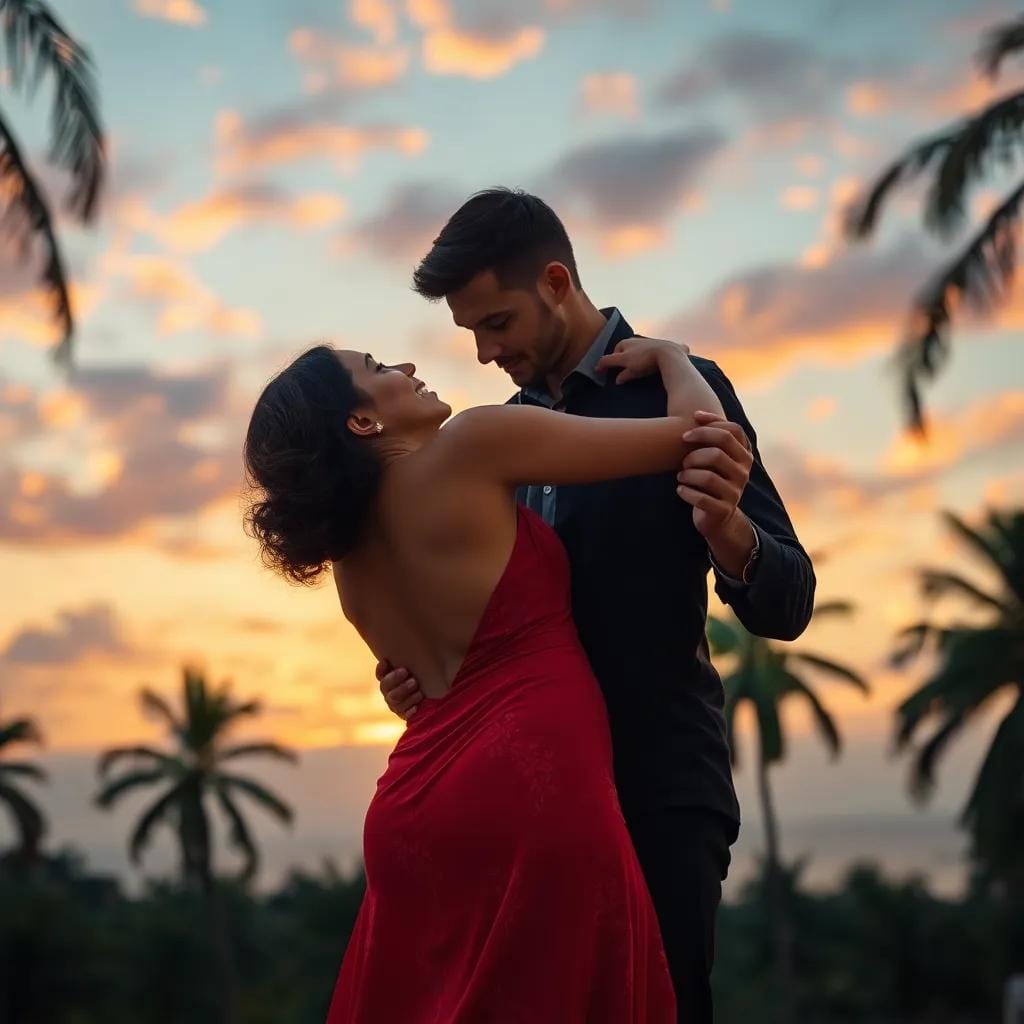 Sensual Tango Under Tropical Sunset Skies