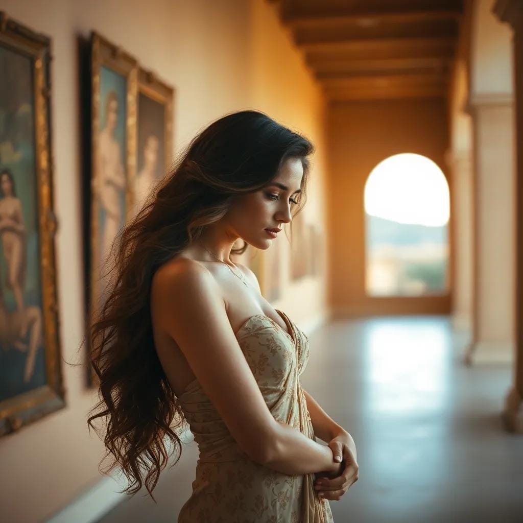 In the hushed corridors of the city's oldest art gallery, where masterpieces whispered secrets to the walls, Emily and Ryan found themselves lost in a world of their own creation. The evening sun cast a warm glow through the skylights, illuminating the vibrant hues of Monet's water lilies, and the couple wandered hand in hand, their footsteps echoing off the marble floors. As they paused before a particularly striking piece, Ryan turned to Emily with a mischievous glint in his eye.