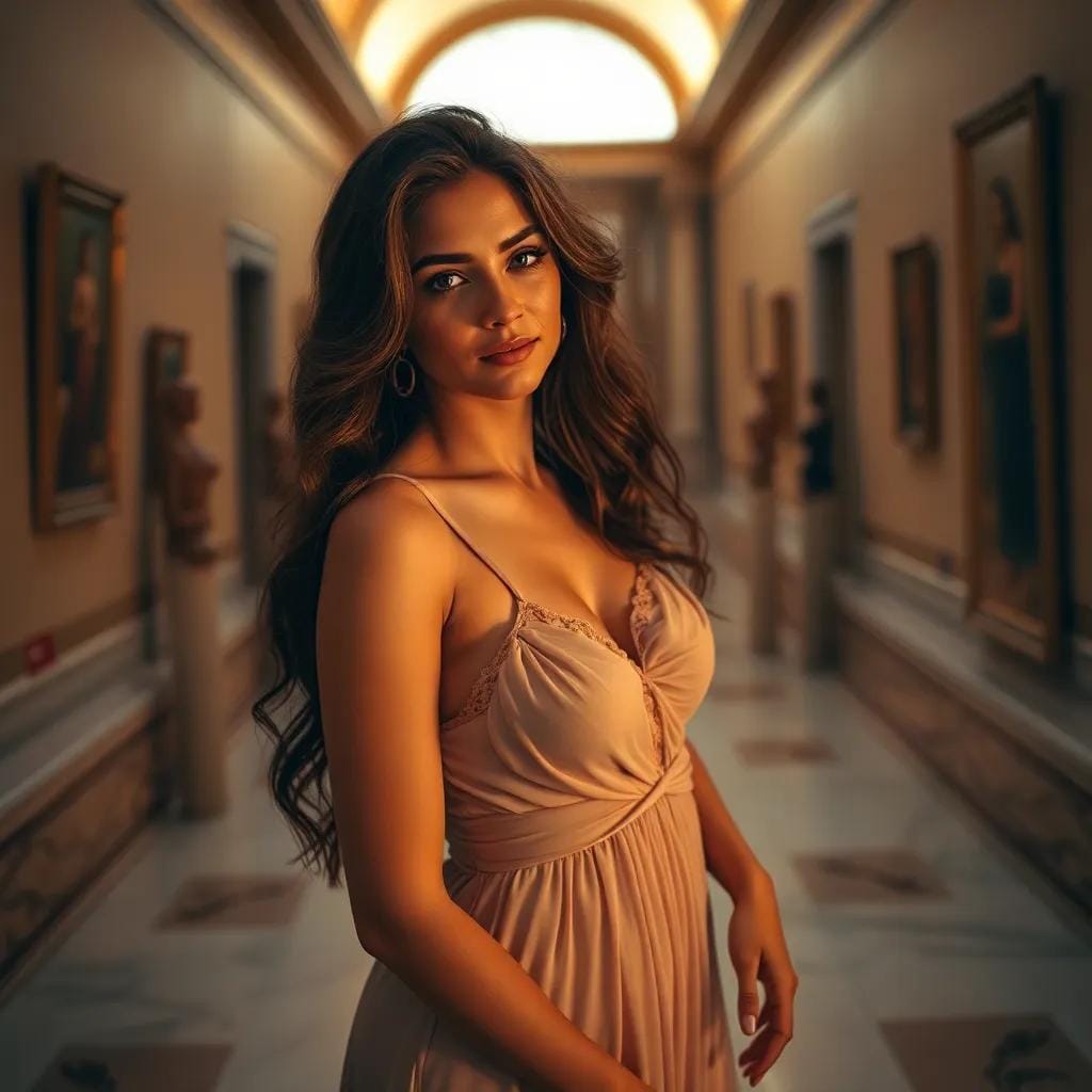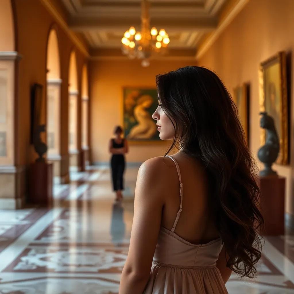 In the soft, golden light of late afternoon, Emma wandered through the hallowed halls of the city's esteemed art museum, her footsteps echoing off the marble floors. The air was alive with the whispers of masterpieces past and present, each brushstroke and chisel stroke a testament to the human experience.
