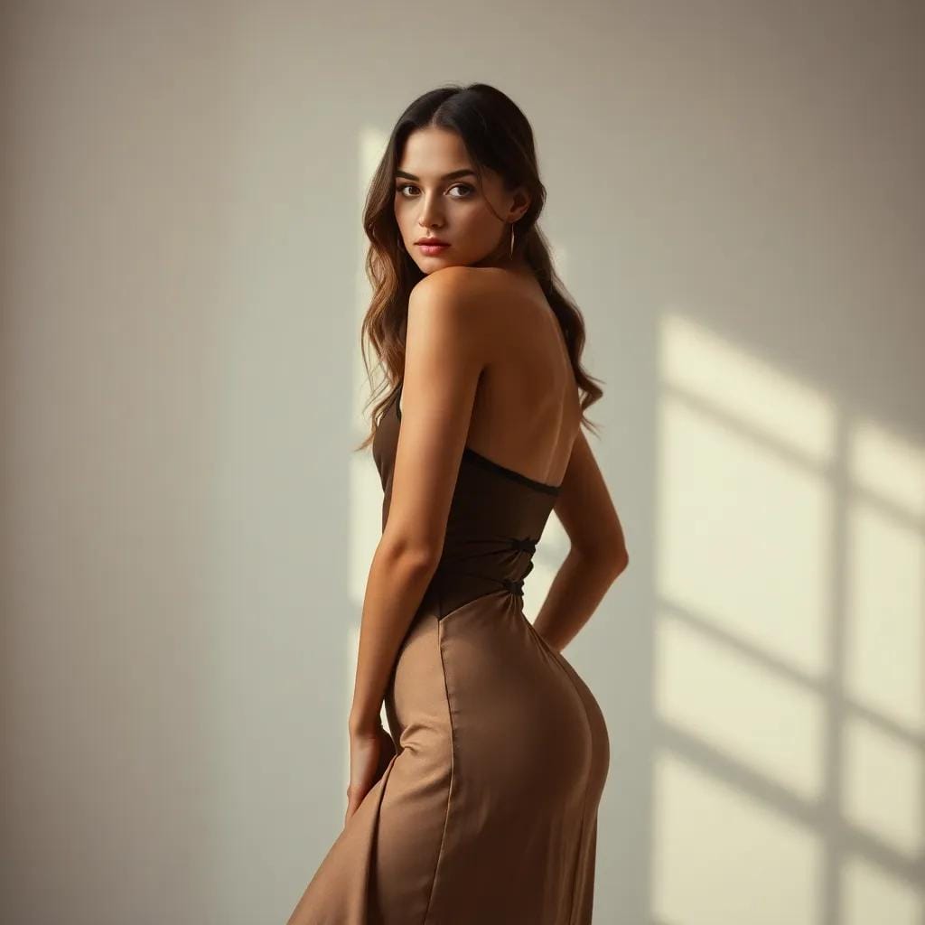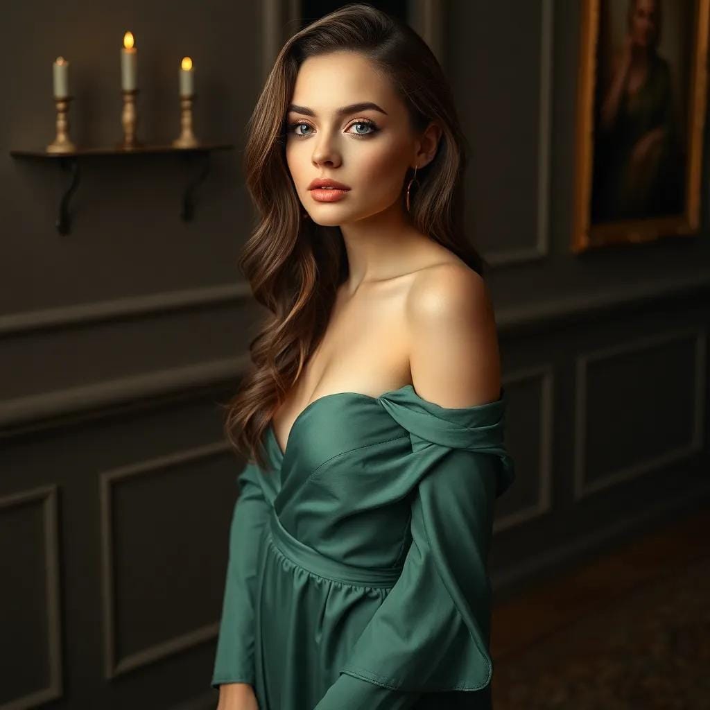 In the elegant studio, a masterpiece unfolded before the artist's discerning eye. His subject, a captivating beauty named Sophia, posed with calculated nonchalance, her slender form a study in elegant geometry. Her skin glowed with a warm, golden light, as if kissed by the sun. Her raven tresses cascaded down her back like a waterfall of night, framing the delicate contours of her face. As the artist's brush danced across the canvas, Sophia's gaze drifted to the mirror, where her reflection watched her with an air of quiet confidence. Her shoulders, two perfect curves of alabaster, rose and fell with each measured breath, their delicate lines a testament to her poise. Her navel, a tiny, shimmering pool, seemed to beckon the artist's hand, inviting him to explore the intricate patterns of her being. With each stroke of the brush, Sophia's pose became more captivating, her body a fluid, sinuous curve that seemed to defy gravity itself. Her hips swayed, a slow, hypnotic rhythm that drew the artist in, like a bird to a melody. Her eyes, two glittering sapphires, flashed with a fierce, inner light, as if burning with a creative passion that could not be contained. As the artist's fingers moved across the canvas, Sophia's body seemed to come alive, her skin rippling with a sensual pleasure that was almost palpable. Her breath quickened, her heart pounding in her chest like a drum, as she surrendered to the creative fantasy that was unfolding before her. And in that moment, she was one with the artist, their minds and spirits entwined in a dance of artistic delight that would leave them both inspired and wanting more. The artist's brush danced across the canvas, capturing the essence of Sophia's beauty, her elegance, and her poise. The colors blended together in a beautiful harmony, a masterpiece that would be remembered for generations to come.