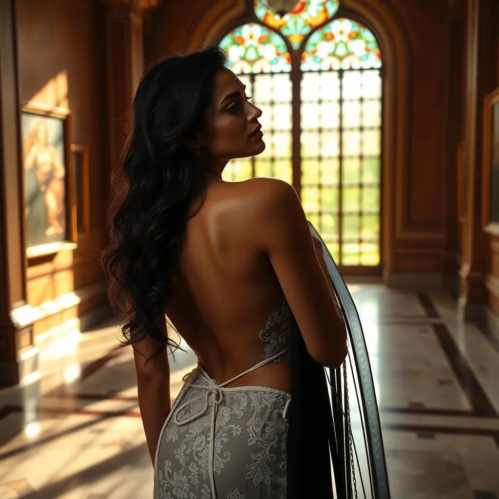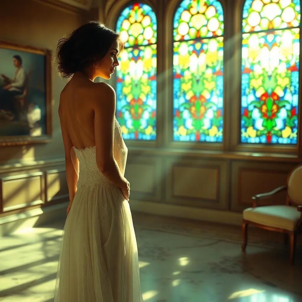 Amidst the tranquil atmosphere of the city's oldest art gallery, where sunlight filtered through stained glass windows, casting kaleidoscopic patterns on the marble floor, Dr. Sophia Patel stood before a masterpiece by the French Impressionist, Monet.