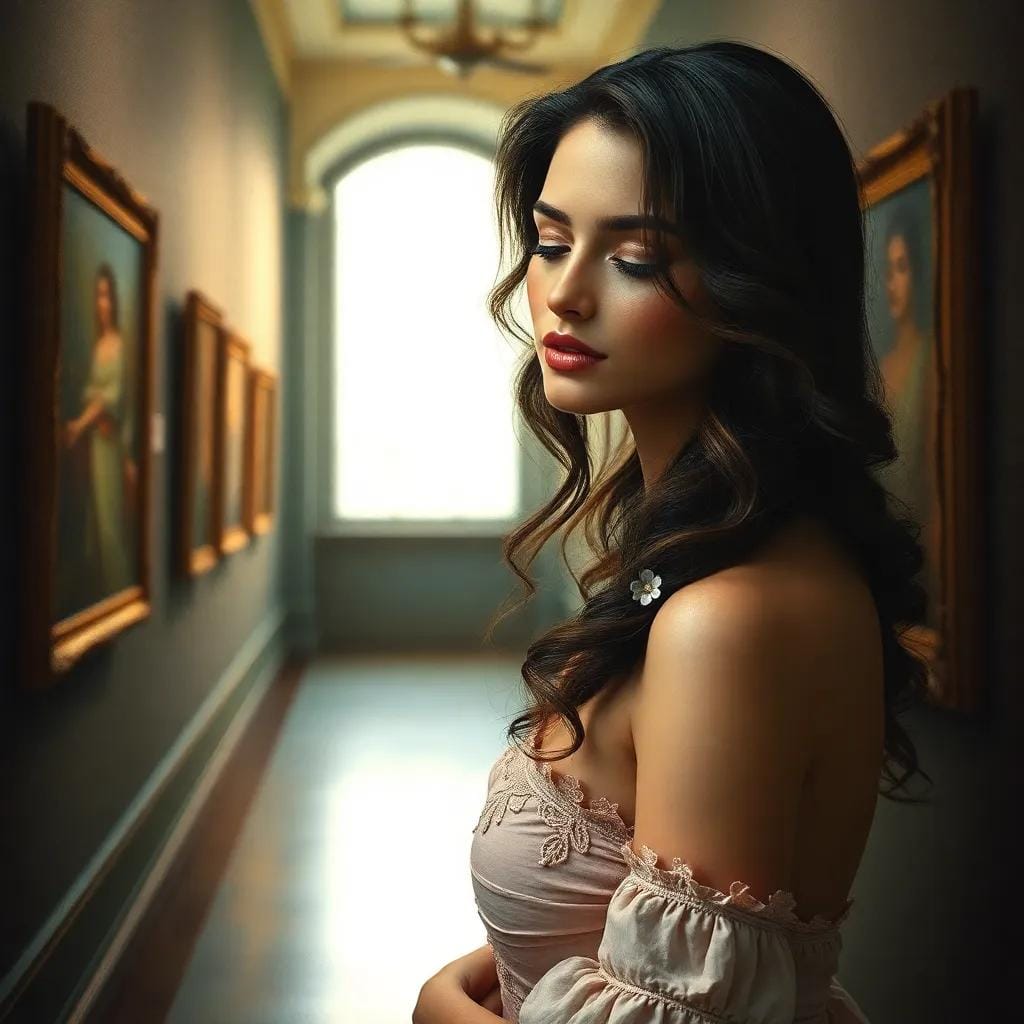 They paused before a stunning Monet watercolor, the soft colors and gentle light transporting them to a world of serenity. As they stood there, Emma felt the boundaries between them dissolving, their connection deepening with each passing moment. Their conversation meandered through the museum, eventually leading them to a small, secluded rooftop garden, where the city's twinkling lights cast a magical glow.