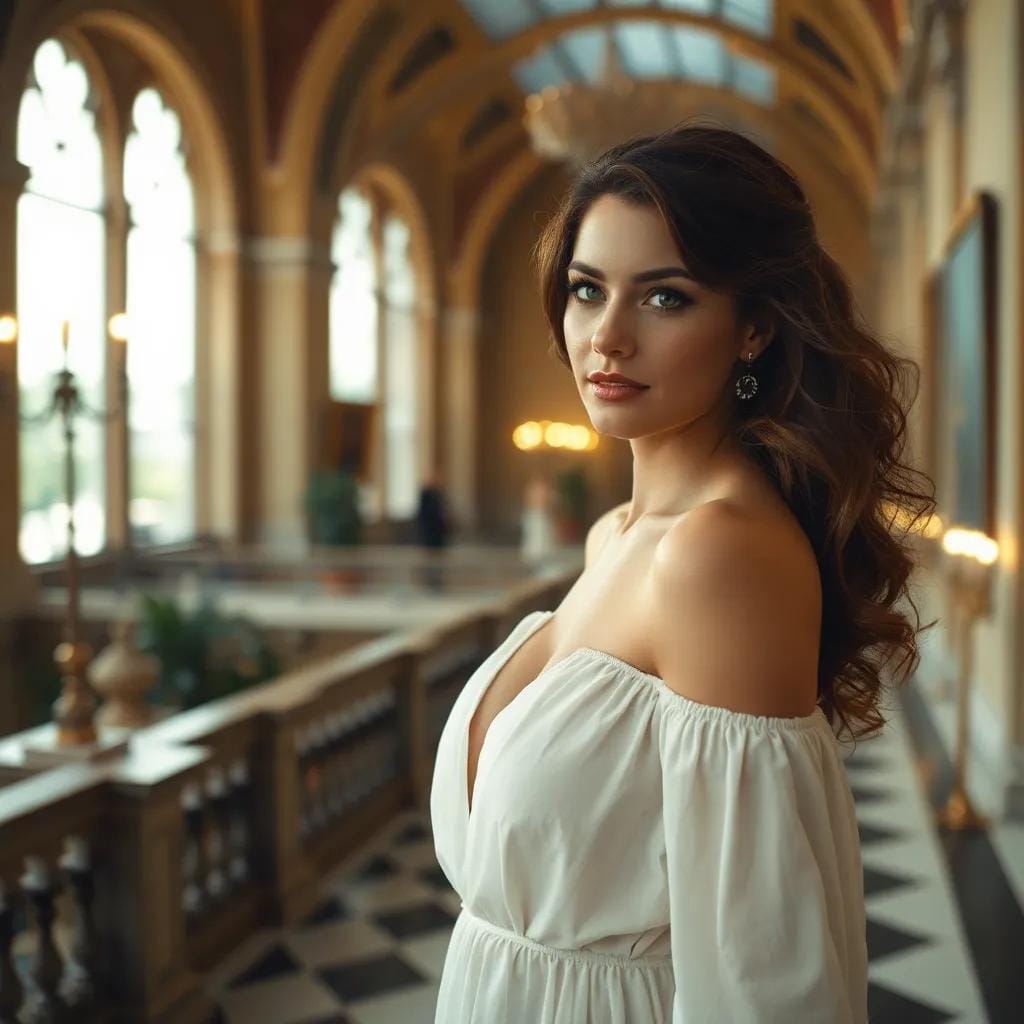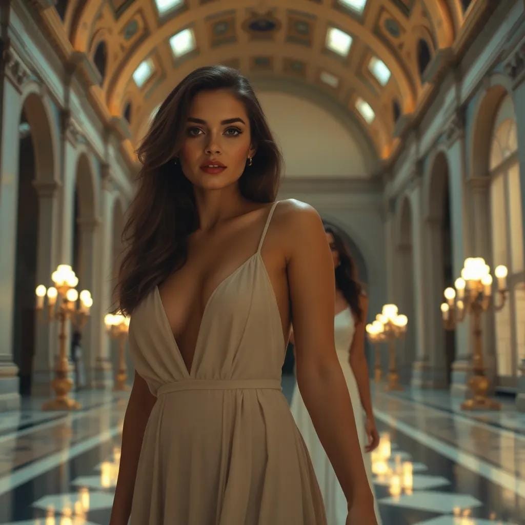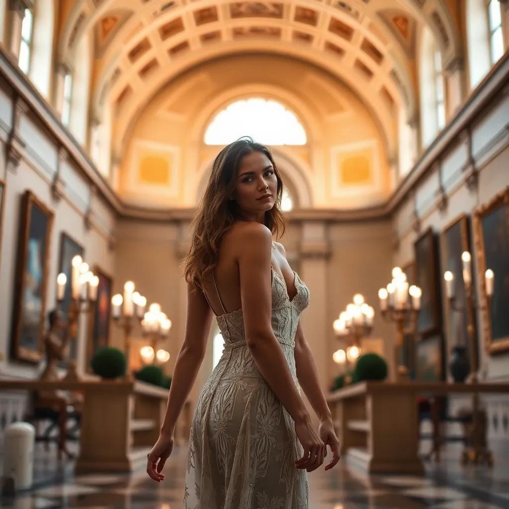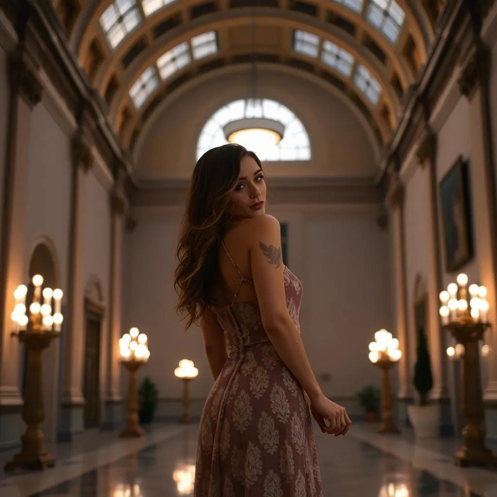 In the grand atrium of the city's oldest art gallery, amidst the majestic sweep of vaulted ceilings and the soft glow of candelabras, Emily and Jack strolled hand in hand, their footsteps echoing off the polished marble floor. As they paused before a stunning fresco, Jack's eyes sparkled with mirth, and he whispered, "If we were meant to fly, we wouldn't keep losing our luggage." Emily's laughter was like a gentle breeze on a summer's day, rustling the leaves of her dark hair as she playfully rolled her eyes.