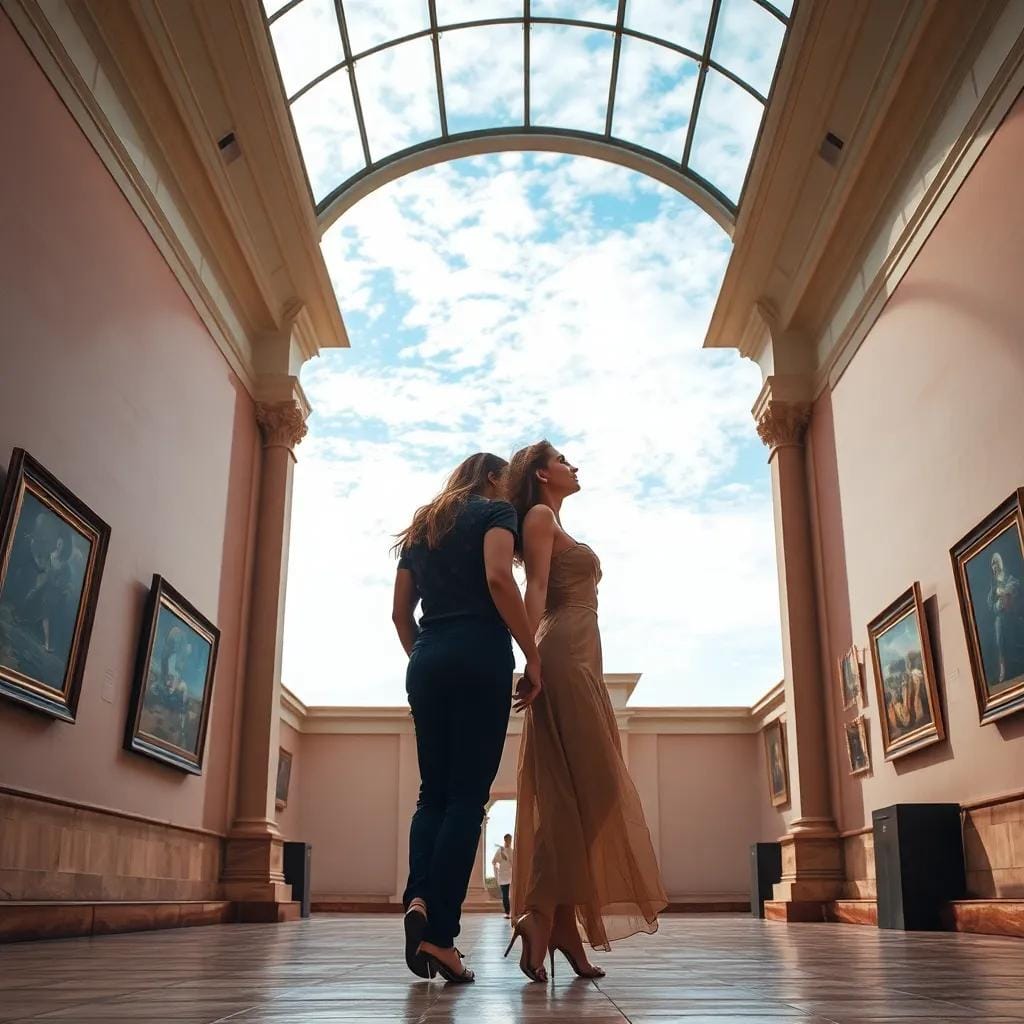 As they wandered through the grand halls of the National Gallery of Hungary, their fingers intertwined, a gentle breeze carrying the whispers of the city's history. Amidst the masterpieces on display, they paused before a serene watercolor of the Danube, its soft hues evoking the misty dawn that shrouded the city.