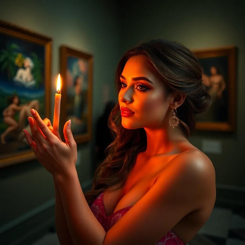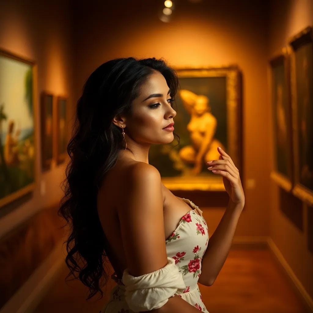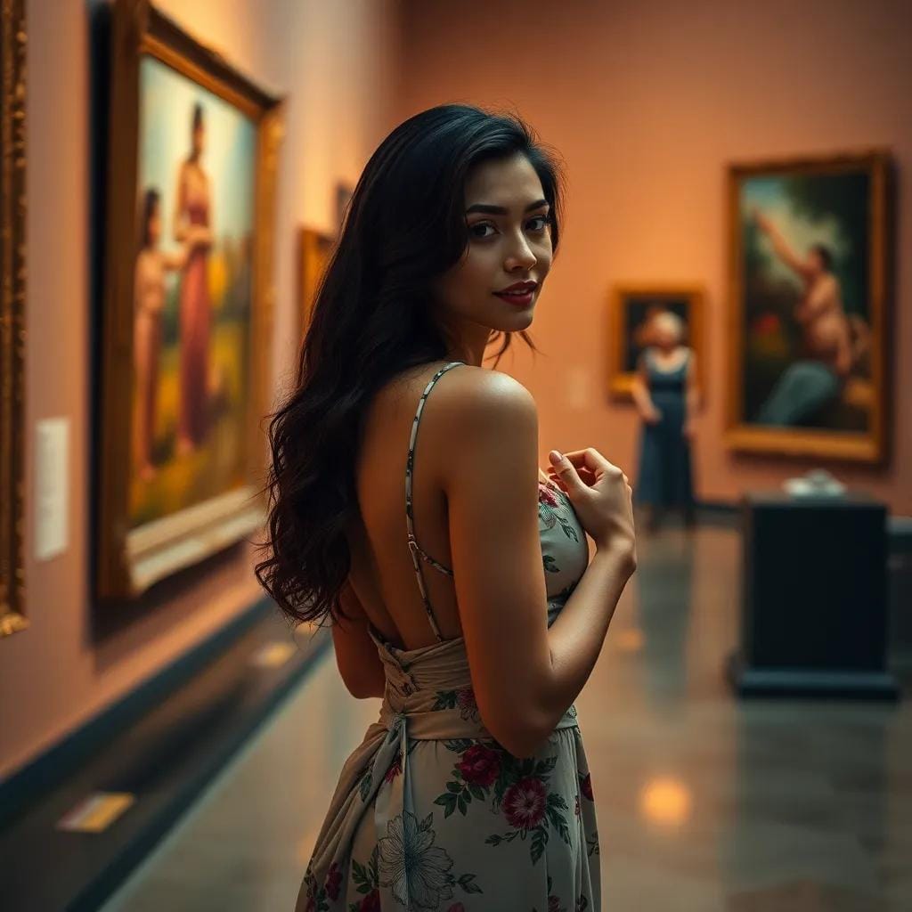 As we strolled through the hushed galleries of the art museum, the soft glow of the setting sun casting a warm ambiance over the masterpieces on display, I couldn't help but notice the way the light danced in her eyes. Her gaze lingered on a particularly striking Monet, the colors and brushstrokes seeming to come alive as she stood before it.