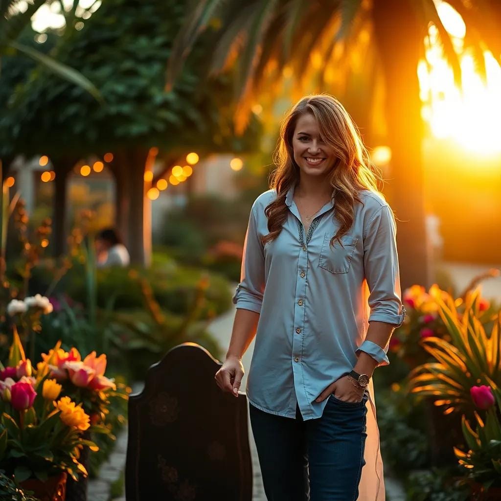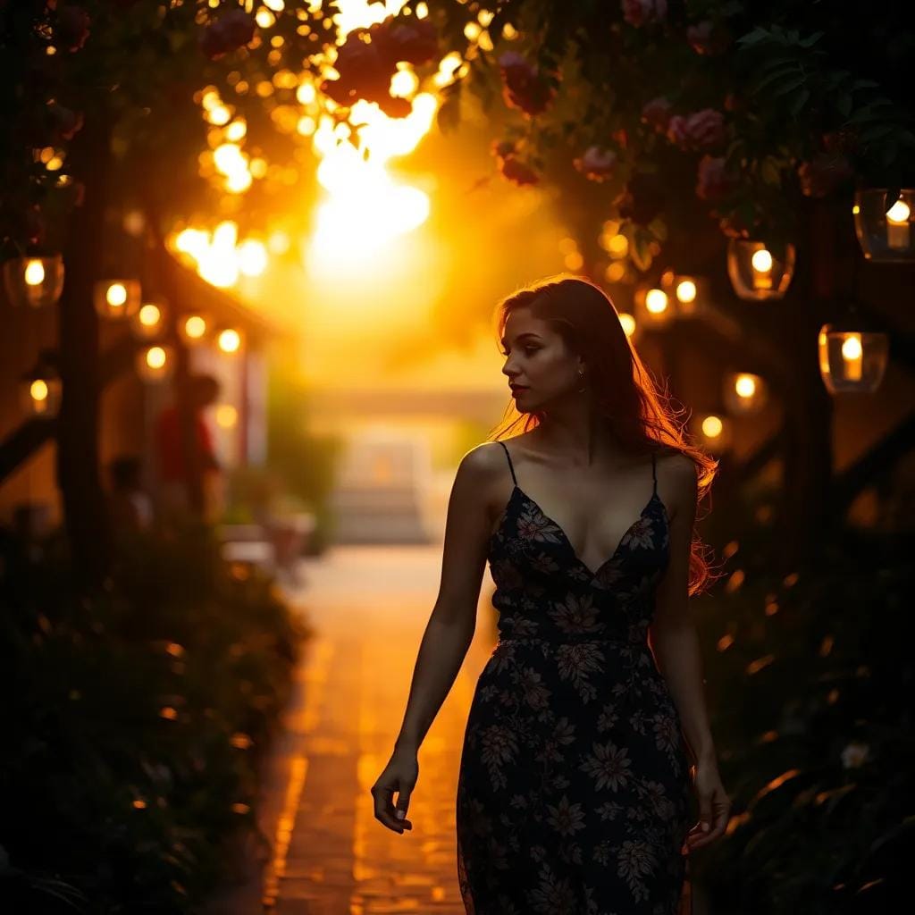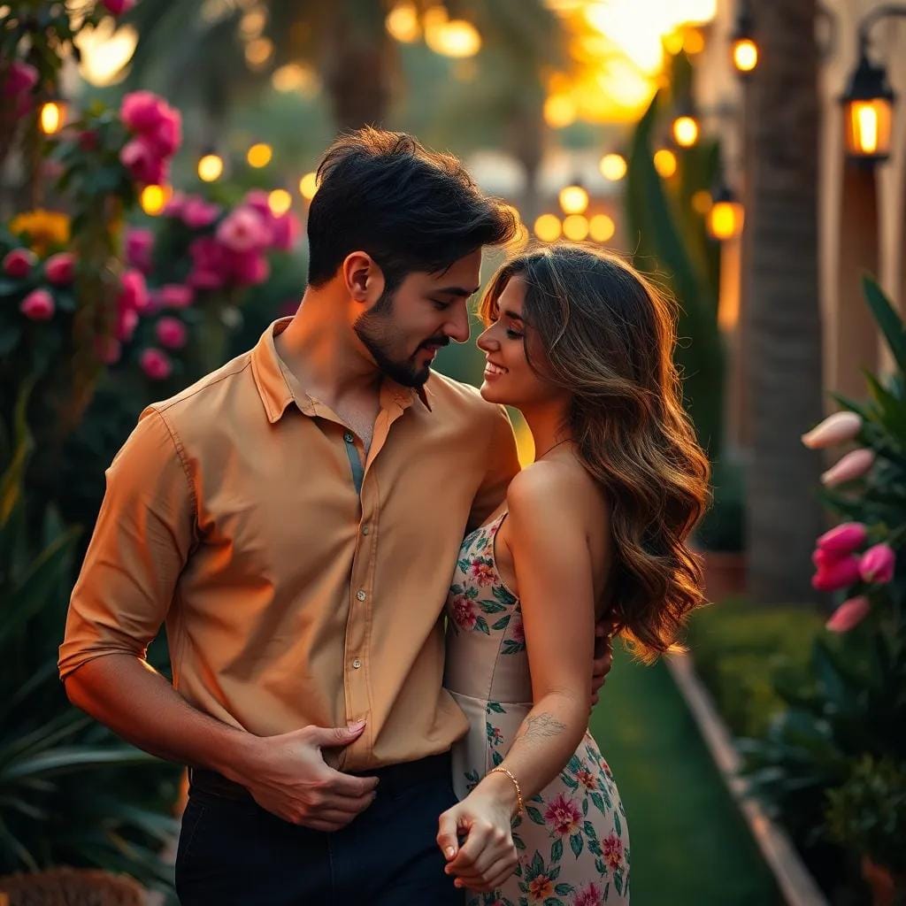 In the soft, golden light of the late afternoon, Emily and James strolled hand in hand through the winding paths of the botanical garden, the sweet scent of blooming flowers and fresh-cut grass filling the air. They had spent the day exploring the city's hidden gems, and now they found themselves in this serene oasis, surrounded by nature's splendor. As they walked, the sound of gentle fountains and chirping birds created a soothing melody, a perfect accompaniment to the gentle rustle of leaves beneath their feet.