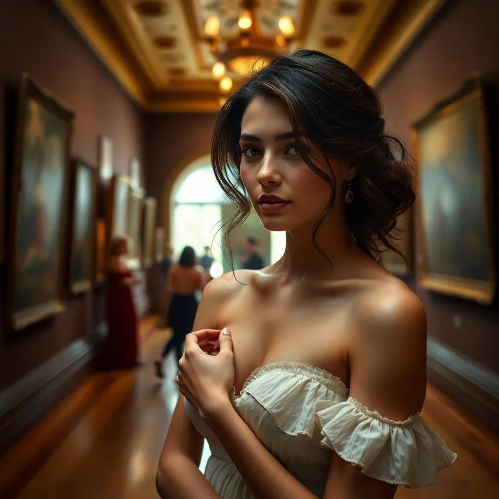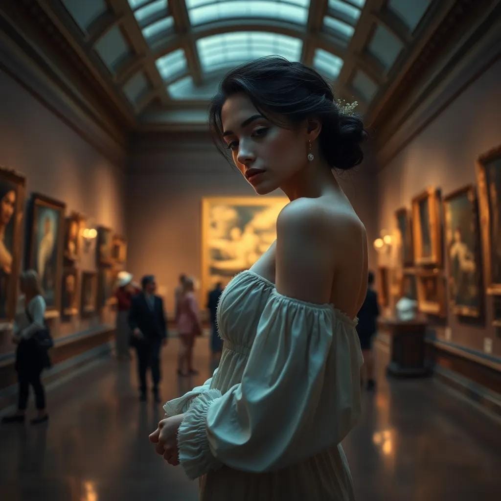 In the softly lit galleries of the city's premier art museum, Emma found herself lost in the world of masterpieces. The scent of old books and the gentle hum of hushed conversations created an atmosphere of reverence, as if the very air was alive with the whispers of the past.