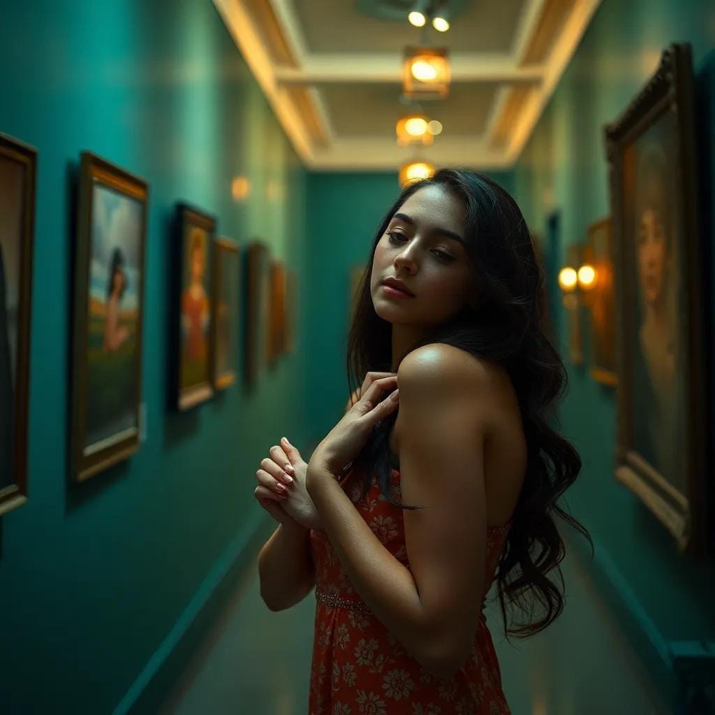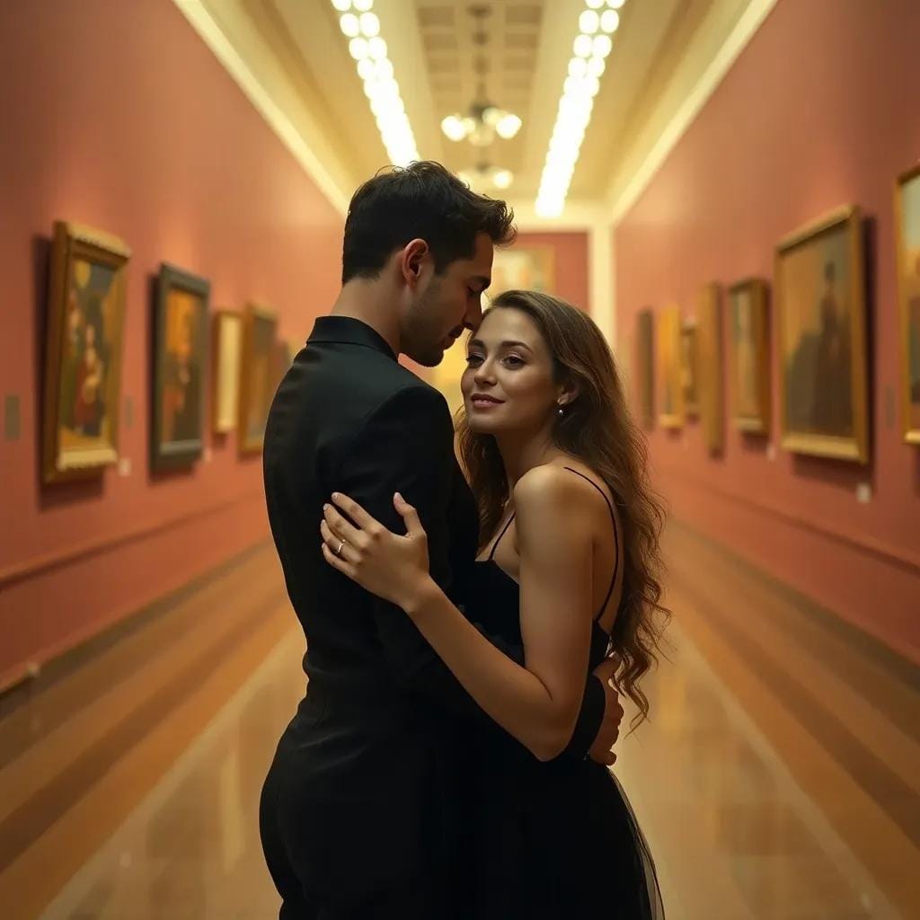 In the hallowed halls of the city's premier art gallery, where the soft glow of luminescent lights danced across the walls, Emma found herself ensnared by the enigmatic smile of a stranger. His eyes, like sapphires polished to a radiant sheen, sparkled with a knowing glint as he gazed upon a particularly enigmatic masterpiece.