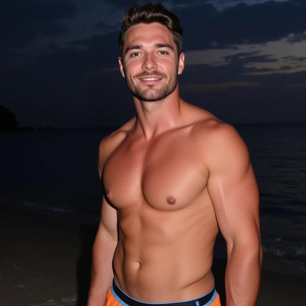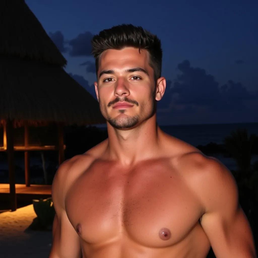 In the sultry twilight of a Tahitian beachside bungalow, the scent of frangipani and the soft lapping of waves against the shore created an atmosphere of languid desire. Moe, a ruggedly handsome Australian, stood in the doorway, his chiseled features illuminated by the fading light.