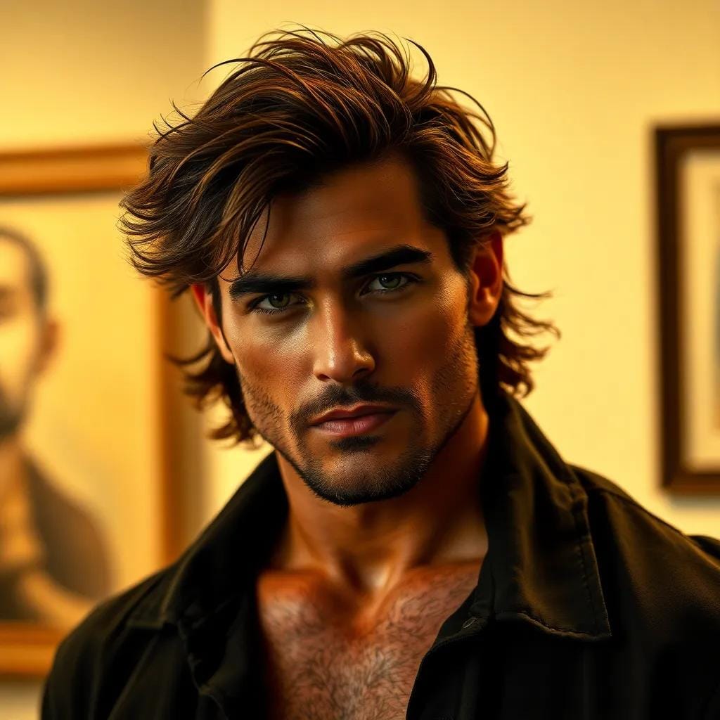 I had always been drawn to this place, with its sleek, modern architecture and its vast collection of contemporary art. Tonight, I had come to meet a friend, but as I scanned the room, my eyes landed on a stranger who seemed to be lost in the same reverie as I. He stood before a stunning installation, his eyes fixed intently on the swirling patterns of light and color that danced across the wall. His dark hair was tousled, and his eyes were fringed with thick lashes that seemed to sparkle in the dim light.