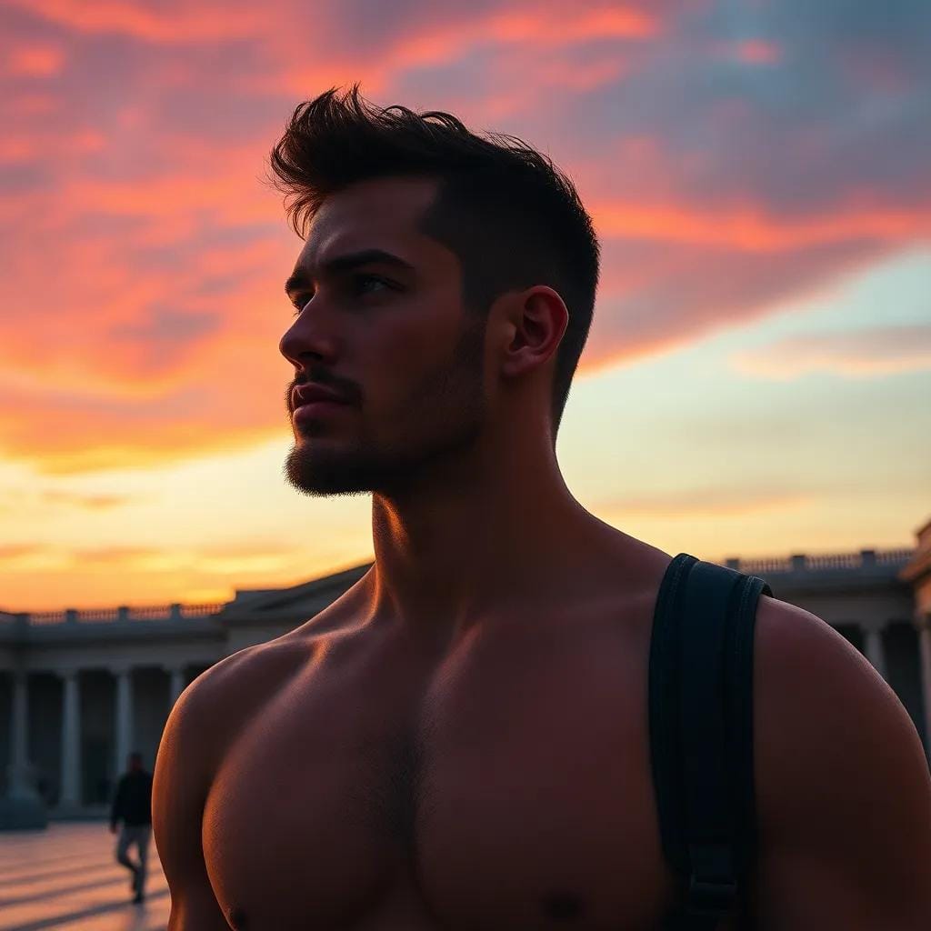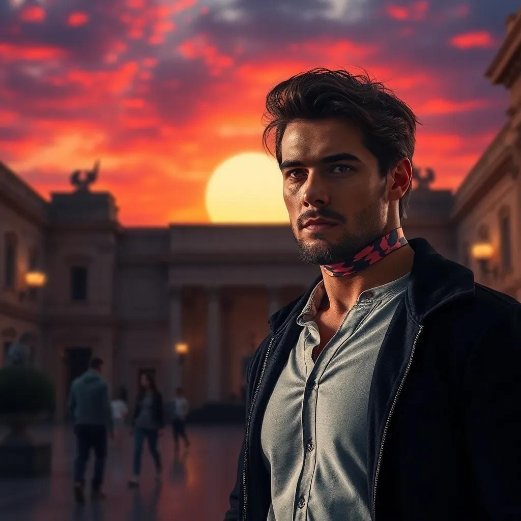 Amidst the velvety twilight, where the sky was set aflame by the departing sun, they strolled through the museum's grand atrium. The air was alive with the whispers of the past, as if the very walls were sharing ancient secrets.
