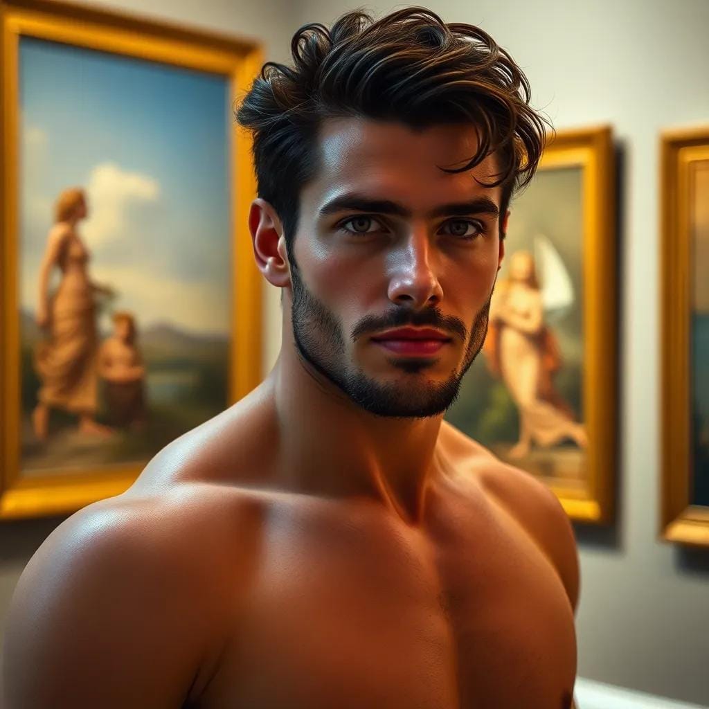 In the serene tranquility of the art gallery, amidst the hushed whispers of connoisseurs and the soft glow of golden lighting, Emma and Ryan found themselves lost in the world of masterpieces. The Rule of Feline Frustration had struck Emma, and as she hastily excused herself to the restroom, Ryan remained enthralled by the Impressionist exhibit, his eyes lingering on the gentle brushstrokes of Monet's water lilies. As Emma returned, her cheeks flushed from the brief respite, Ryan's gaze met hers, and a warm smile spread across his face.