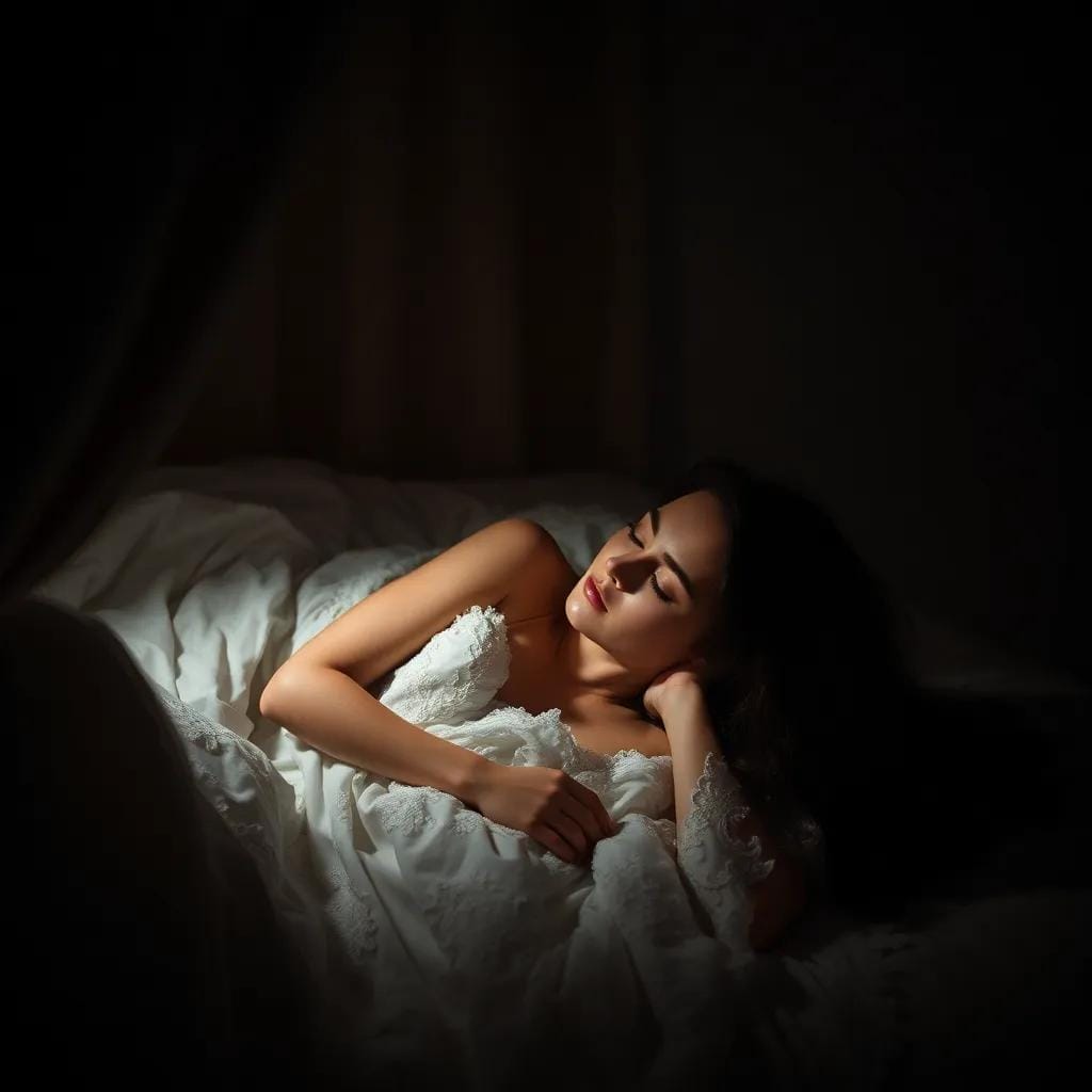 Night fell like a velvet curtain, and she lay beneath it, the sheets a soft echo of moonlit lace. In the hush of her chamber, the words of her childhood lullaby slipped into her mind—“Now I lay me down to sleep, I pray the Lord my soul to keep.” They were no longer mere syllables; they were a benediction she offered herself, a promise of reverence for the fragile beauty of her own being. Her breath rose in slow, deliberate waves, a tide that carried her heart toward a presence that had become the quiet music of her evenings.