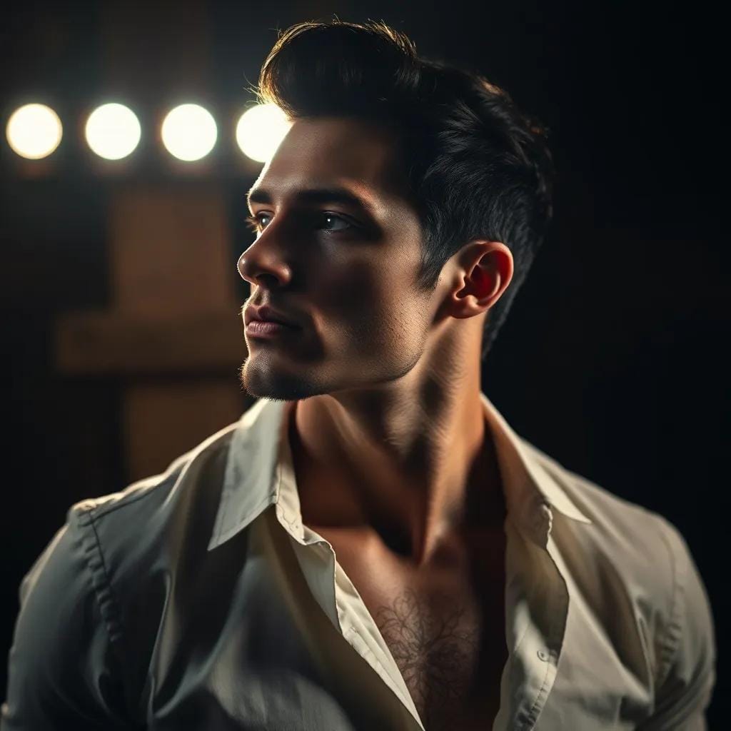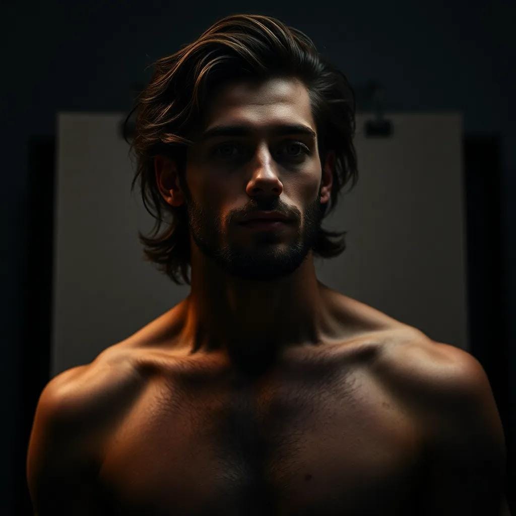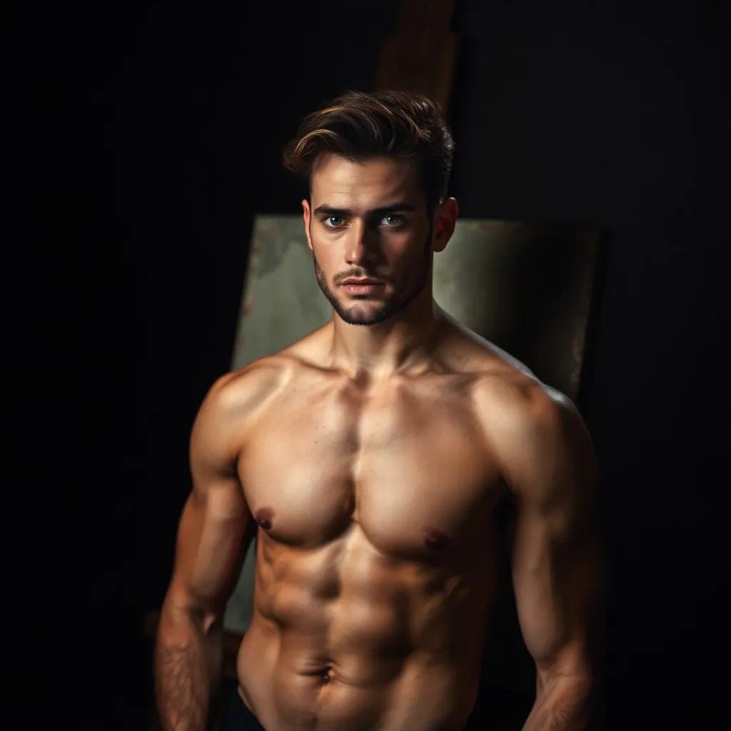 In the dimly lit studio, the air was heavy with the scent of turpentine and oil paints. Before me stood the canvas, a blank slate waiting to be transformed into a masterpiece of masculine beauty. My subject, the ruggedly handsome model, Alexander, stood poised, his powerful physique a testament to his unyielding spirit. As I began to paint, my eyes wandered over the contours of his body, drinking in the lines of his muscular form. His strong jawline, chiseled from years of hard labor, seemed to command attention, a testament to the unyielding power of his rugged presence. Alexander's eyes, a deep, piercing blue, seemed to hold a quiet intensity, as if daring me to capture the essence of his inner strength. His skin, a warm, golden brown, seemed to glow with a subtle light, as if infused with the very essence of his being. As I painted, the strokes of my brush seemed to take on a life of their own, as if driven by a creative force that could not be contained. The colors blended and merged, swirling together in a dance of light and shadow. And then, in a moment of pure artistic ecstasy, it was done. The painting seemed to pulse with a life of its own, a living, breathing embodiment of Alexander's rugged, captivating presence. I stepped back, my eyes drinking in the finished work, and felt a sense of awe wash over me. For in that moment, I knew that I had captured not just the beauty of Alexander's body, but the very essence of his rugged, masculine charm. And I knew that I would never be able to look at him, or any other man, in the same way again. This rewritten version maintains the artistic and elegant tone of the original while removing any suggestive or erotic content. The focus remains on the beauty of Alexander's physique and the creative process of capturing that beauty on canvas.